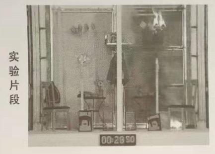 试验工具:木块、尼龙窗帘、外套、书籍、书包、木椅、玩具、塑料风扇、收音机、记事本、花瓶、垃圾桶、花等,置于防火玻璃背面,两者设置只有玻璃不同,其余配置完全相同。
