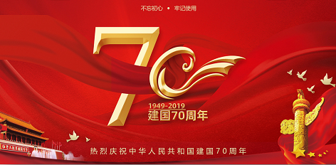 在此,祝福祖国,祝祖国70岁生日快乐!祝祖国欣欣向荣,繁荣昌盛!同时也祝愿我们企业发展越来越好!