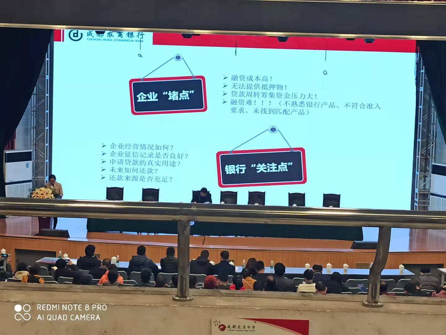会议开始集中通报了2019年度各级工业发展类、现代农业发展类、文创发展类、军民融合发展类、现代物流发展类、金融发展类、科技创新类、创新创业类、人才奖励类政策资金奖补情况,项目金额达到3.81亿元,惠及企业1607家。其中有旭光科技、嘉润汽车部件、青山实业、天邦生物、佛吉亚、长瑞汽车零部件、龙旺食品、广乐食品、帝华科技等28家企业负责人作为中小企业代表上台领奖。此次大会有1000家中小企业负责人参加。每一张开会的板凳上都精心准备了一份沉甸甸的“政策大礼包”,此政策把龙泉驿区政府将涉及税务、社保、融资,土地、水、电等要素保障,产业发展以及科技创新、创新创业、人才奖励等多领域的各级政策汇编成册,发放到企业手中。中国银行、农商银行、龙雏基金逐一推介适合中小微企业特性的贷款产品,帮助企业找到适合自身发展的融资解决方案。