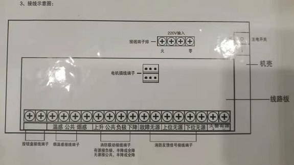 电动挡烟垂壁是一类通过电源工作的防烟蓄烟设施,由手动控制按钮盒、烟感探测器、电机、防火布、控制箱等构成,其中按钮盒、烟感器、电机等都需要同控制箱连接使用,那么该如何正确接线呢?