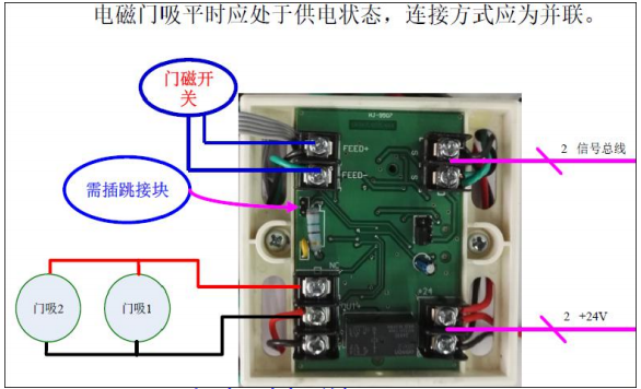 电磁门吸平时应处于供电状态,连接方式应为并联。