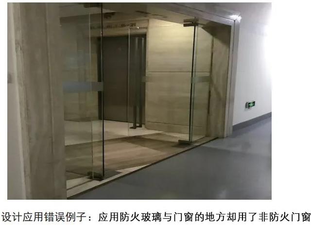 1、应用防火玻璃门窗的地方却用了非防火门窗