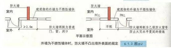 (2)防火墙:建筑外墙使用的是难燃性或可燃性墙体时,防火墙设计应该凸出墙的外表面4米以上,且防火墙两侧的外墙的宽度都不可小于2米的不燃性墙体,其耐火时间不小于外墙的耐火时间。若建筑外墙设计为不燃性墙体时,防火墙不用凸出墙的外表面。
