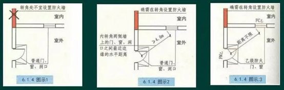 (3)防火墙用于室内时:建筑内发防火墙不适宜设计在转角位置,若确实需要设置,内转角两侧墙上的门、窗、洞口之间较近边缘的距离不可小于4米;若使用乙级防火窗等防止火灾水平蔓延的设施,该距离没有限制。